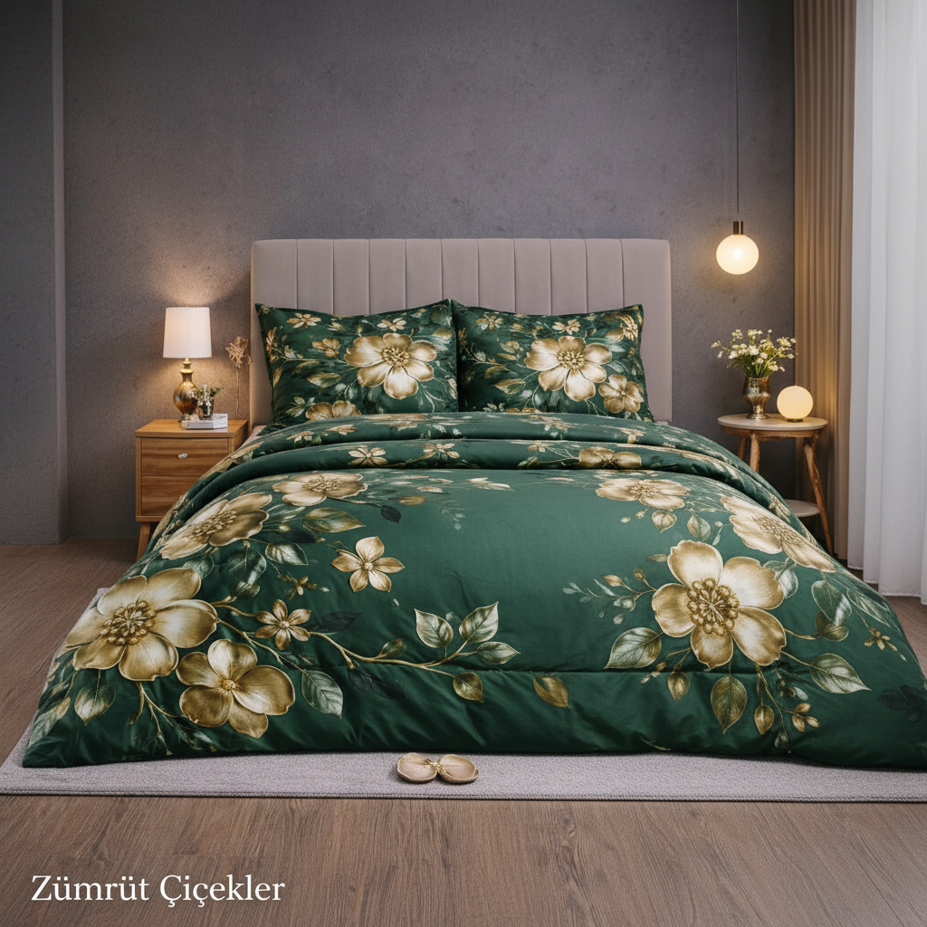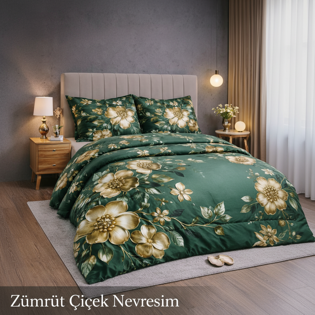 5D Zümrüt Çiçek Nevresim