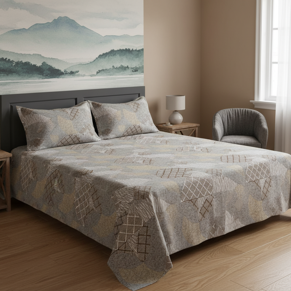 Bej Patchwork Karışık Dokulu Desen